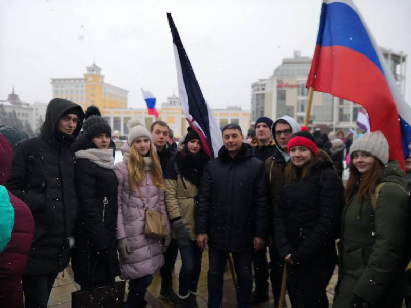 Вчера, в центре Саранска на Площади тысячелетия Мордовия присоединилась к масштабному фестивалю "Крымская весна". На нем присутствовали и представители Темниковского района. Делегация в количестве 25 человек во главе с С.Н.Кизимом - главой Темниковского муниципального района. с государственными флага РФ и РМ присоединилась к празднованию пятилетия воссоединения Крыма с Россией.