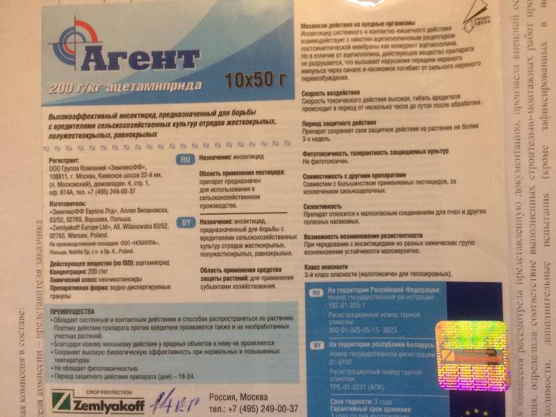 Одним из таких инсектицидов является «Агент», который сохраняет высокую биологическую активность при нормальных и повышенных температурах и не обладает фитотоксичностью.