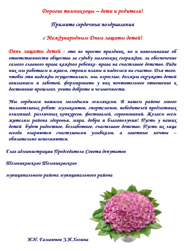 Дорогие темниковцы – дети и родители! Примите сердечные поздравления с Международным Днем защиты детей!