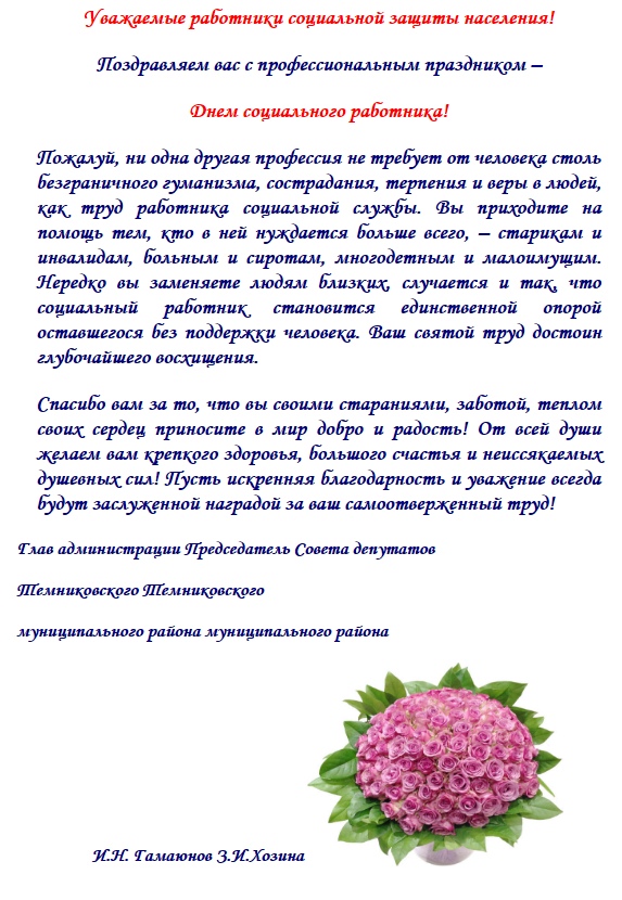 Уважаемые работники социальной защиты населения! Поздравляем вас с профессиональным праздником – Днем социального работника!