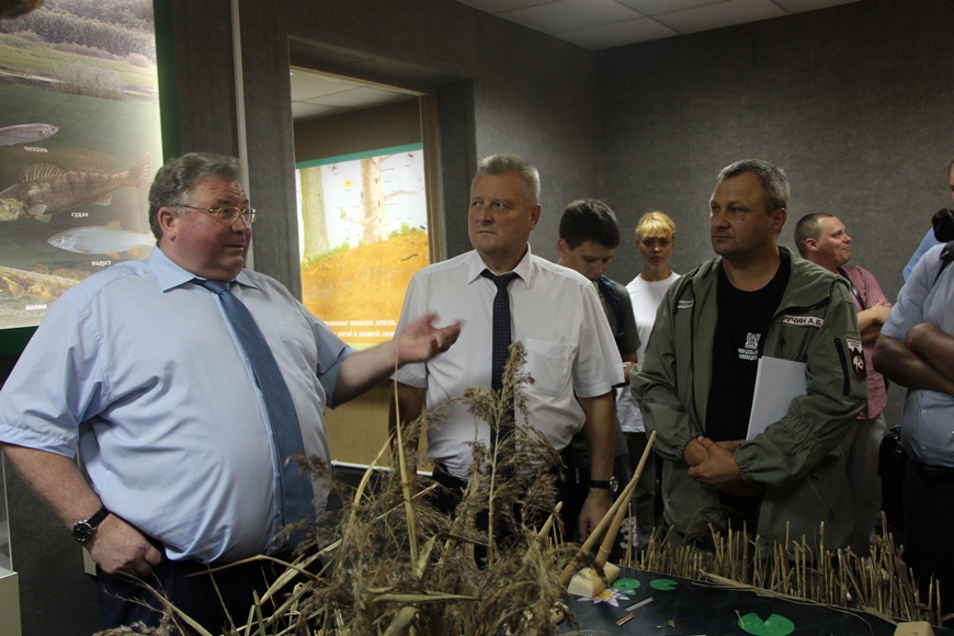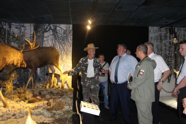 По плану рабочей поездки в Темниковский район Глава Республики Владимир Волков посетил Мордовский заповедник. Владимиру Волкову показали часть экскурсионной программы заповедника, познакомили с достопримечательностями центральной усадьбы и туристическими возможностями учреждения. Высокопоставленный турист побывал на экскурсии в музее природы и в визит-центре заповедника. Владимир Волков интересовался, есть ли в заповеднике медведи и какова их численность, и куда уходят зубры. На все вопросы Главы Республики отвечали экскурсовод, кандидат биологических наук Константин Бугаев и директор заповедника Александр Ручин. Константин Евгеньевич в своем рассказе особо подчеркнул историческую роль Мордовского заповедника в восстановлении бобров, русской выхухоли. Александр Борисович представил гостям экспозиции залов растений, насекомых и пресмыкающихся. Владимир Волков назвал Мордовский заповедник местом, куда обязательно нужно привозить детей: "Мы знаем, как вьюна ловить, а городским детям сейчас нужно показывать, как он выглядит!"