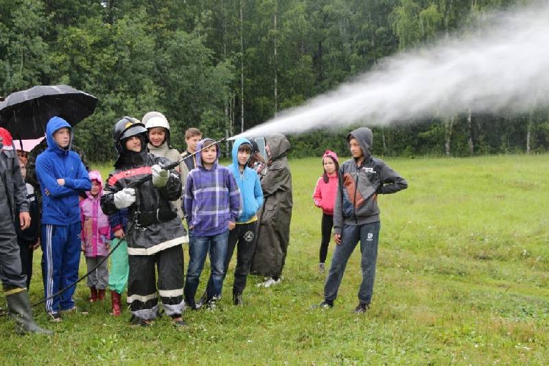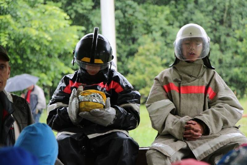 Все дети приняли участие в пожарно-тактических учениях: примерили на себя спецодежду пожарного и пробовали бороться "с огнём" под руководством начальника пожарно-химических станций Сергея Соболева.