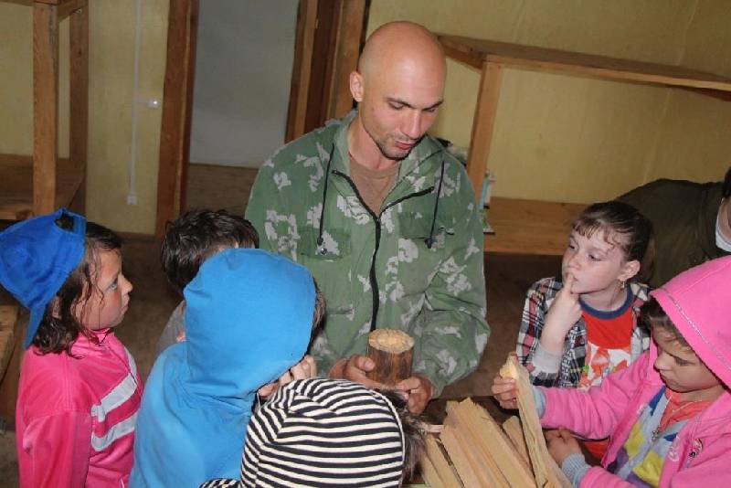 Государственный инспектор в области охраны окружающей среды Михаил Есин рассказал ребятам о видах костров, о том, как их укладывать, какую древесину использовать, и провел мастер-класс по "индейской свече".